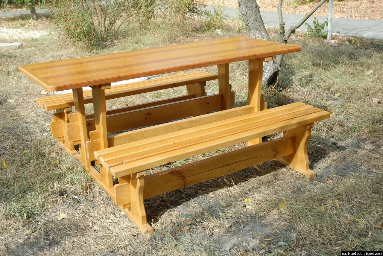 Стол с лавками из натурального сушеного бука, выполненый по