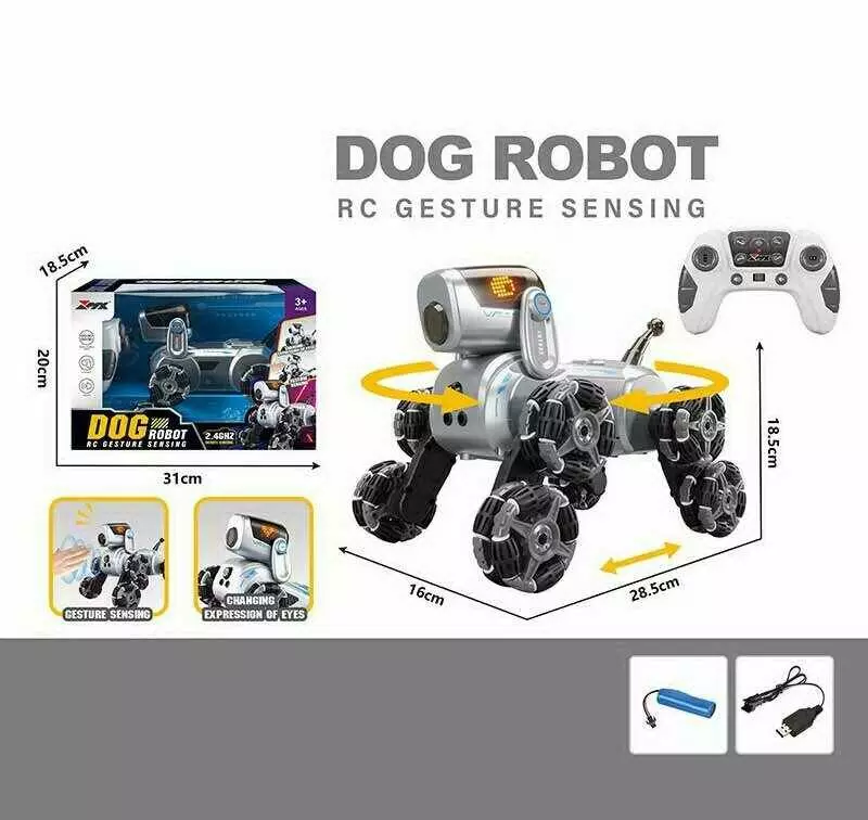 Песик на радіокеруванні Z 6703 A (12) пульт2.4G,USB-каб, акум.3.7V, звуки, роликі колеса, трансформ коліс, сенсор датчики, беззвуч режим, в коробці