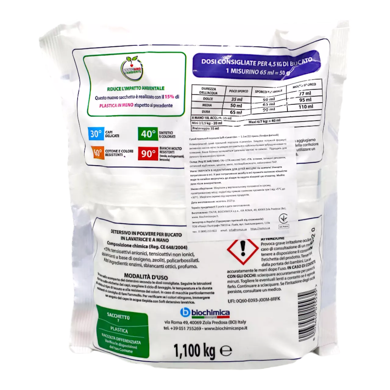 Soft Порошок для прання Lavanda об'ємом 1,1 кг ефективно очищує