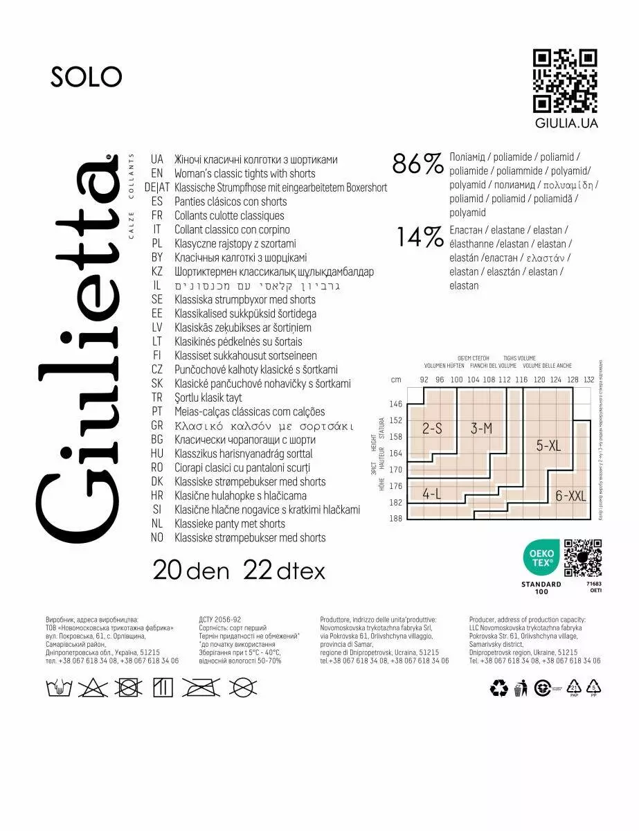 • Склад: 84% поліамід, 16% еластан