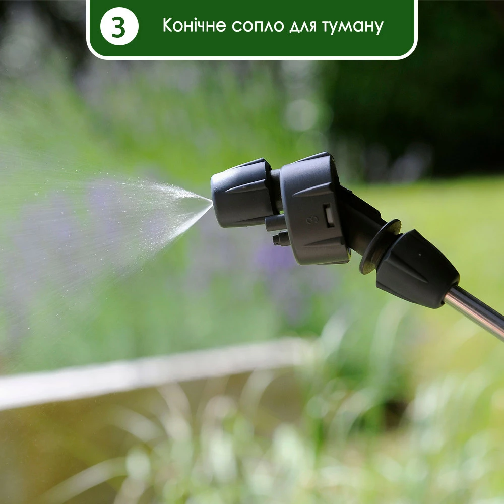 • Тонкий струмінь (ширина 20-60 см), підходить для більш точного розпорошення.