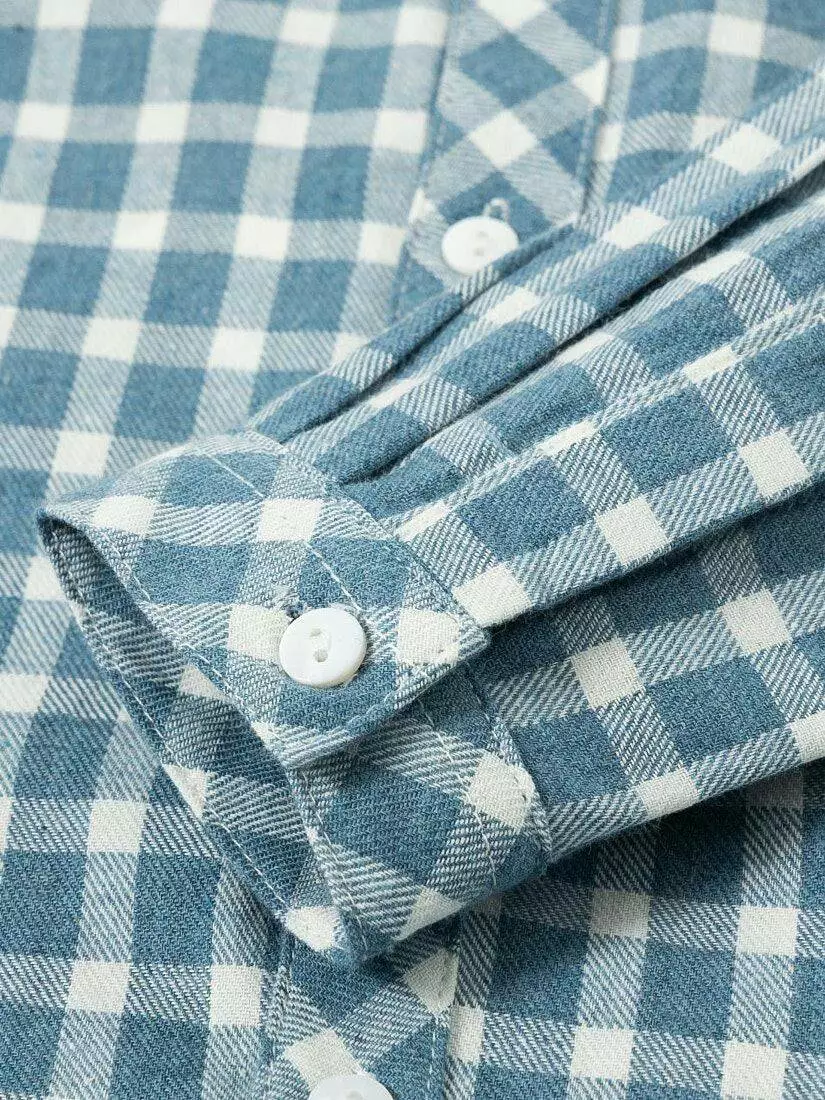 дрібну клітку. Основний колір бірюзовий. Довгий рукав. Відкладний
