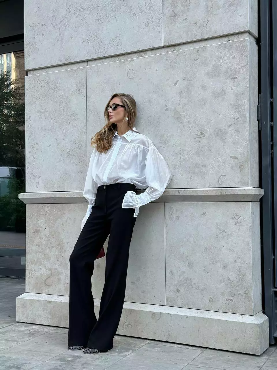 Обʼємна та широка сорочка за рахунок зборок по переду і спинці