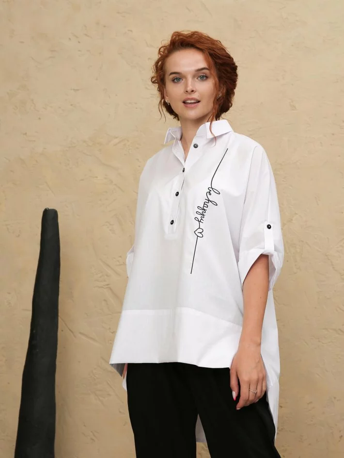 Супер-оперсайз сорочка з бавовняної натуральної тканини, рукав 3/4
