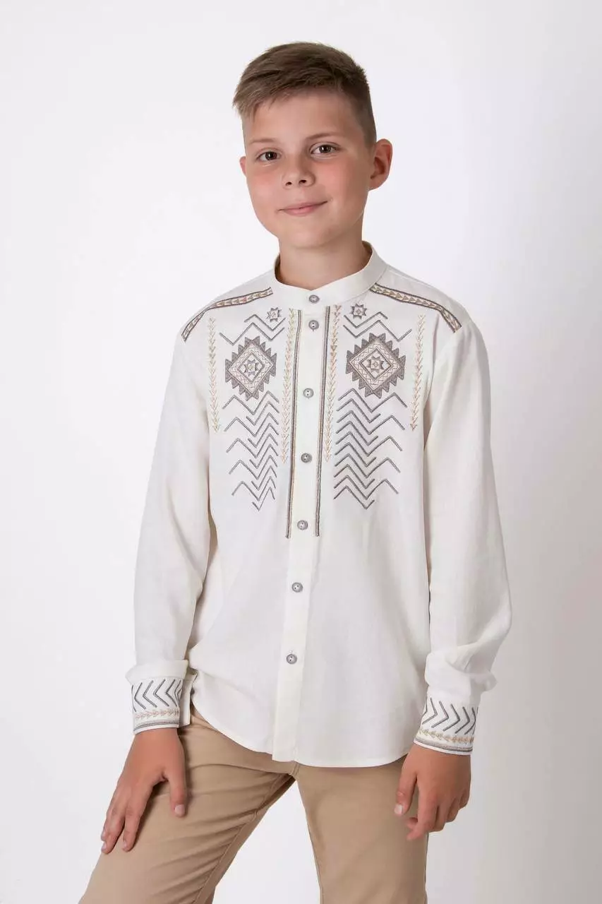 Сорочка ВИШИВАНКА хлоп. молочний льон 5507-02 MEVIS