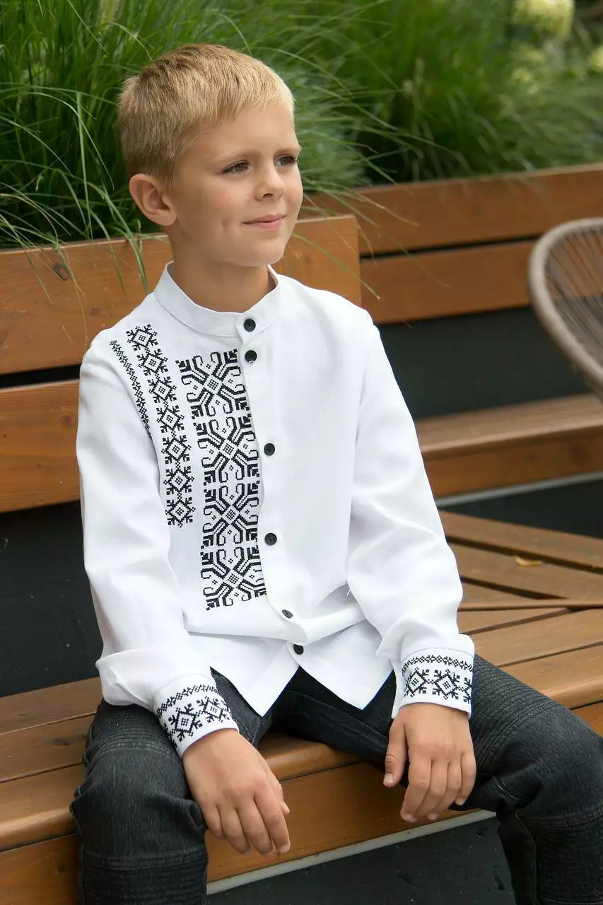 Сорочка ВИШИВКА чорна по-білому хлоп. білий льон 5442-01 MEVIS