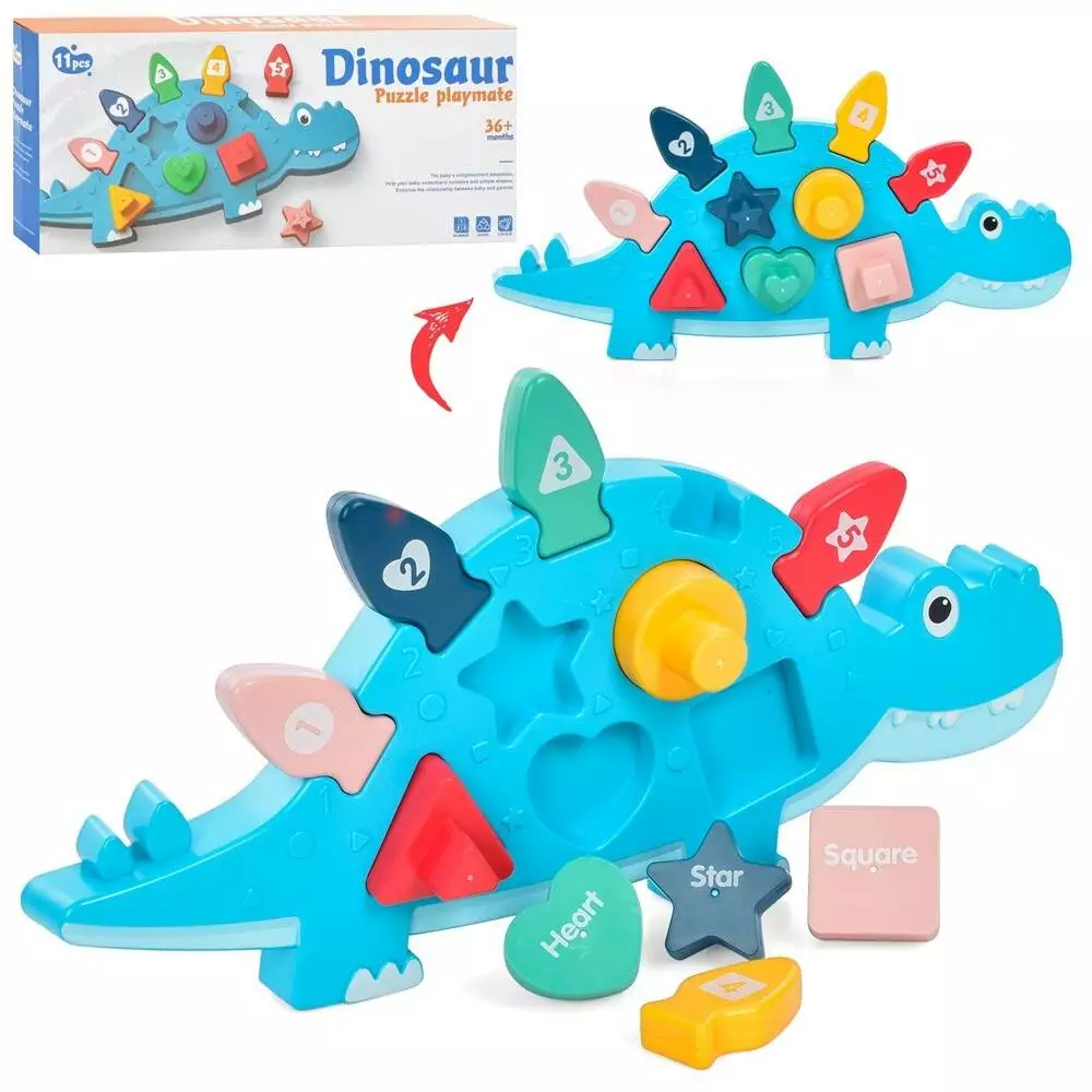 Фотография 1 товарной позиции интернет-магазина детских игрушек www.smarttoys.com.ua Сортер MT033513 динозавр, 11 предметів, цифри, кор., 30-13-4 см.