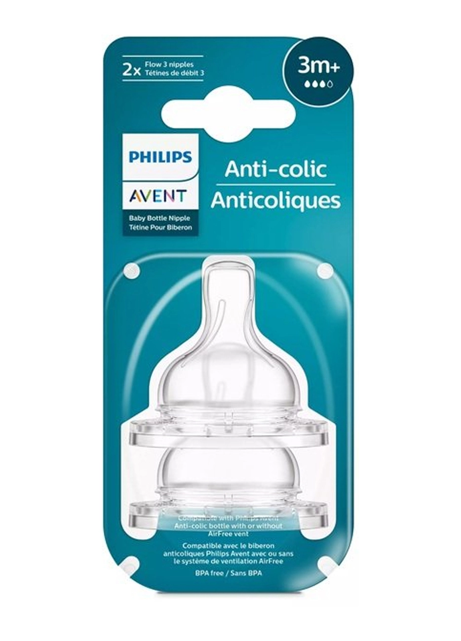 Соска силиконовая Philips AVENT Анти-Колик средний поток от 3 мес 2 шт SCY763/02 (8710103996774)