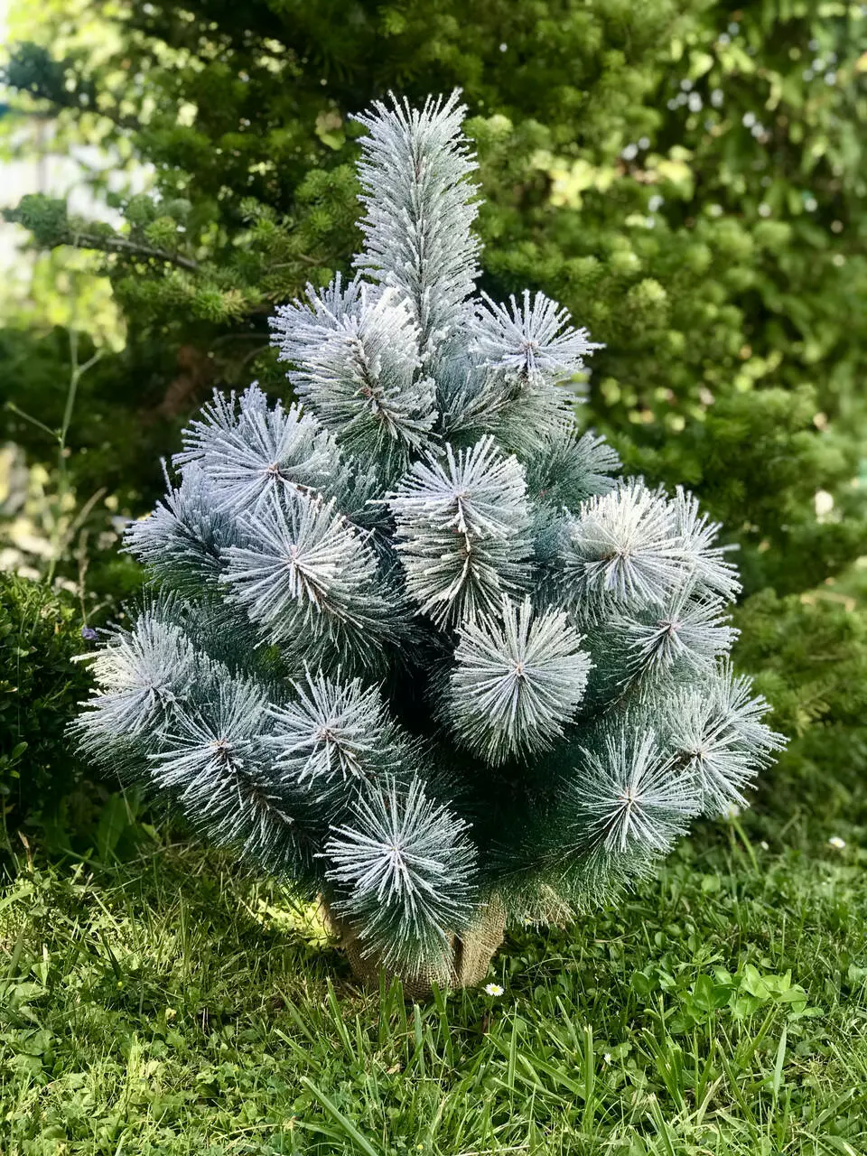 Готова до використання: Сосна встановлена у стильному горщику, який прикрашений мішковиною, що надає йому особливий шарм. Вам не потрібно нічого додавати або складати, просто розмістіть її в бажаному місці і насолоджуйтеся святковою атмосферою.