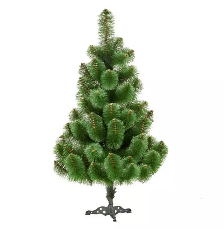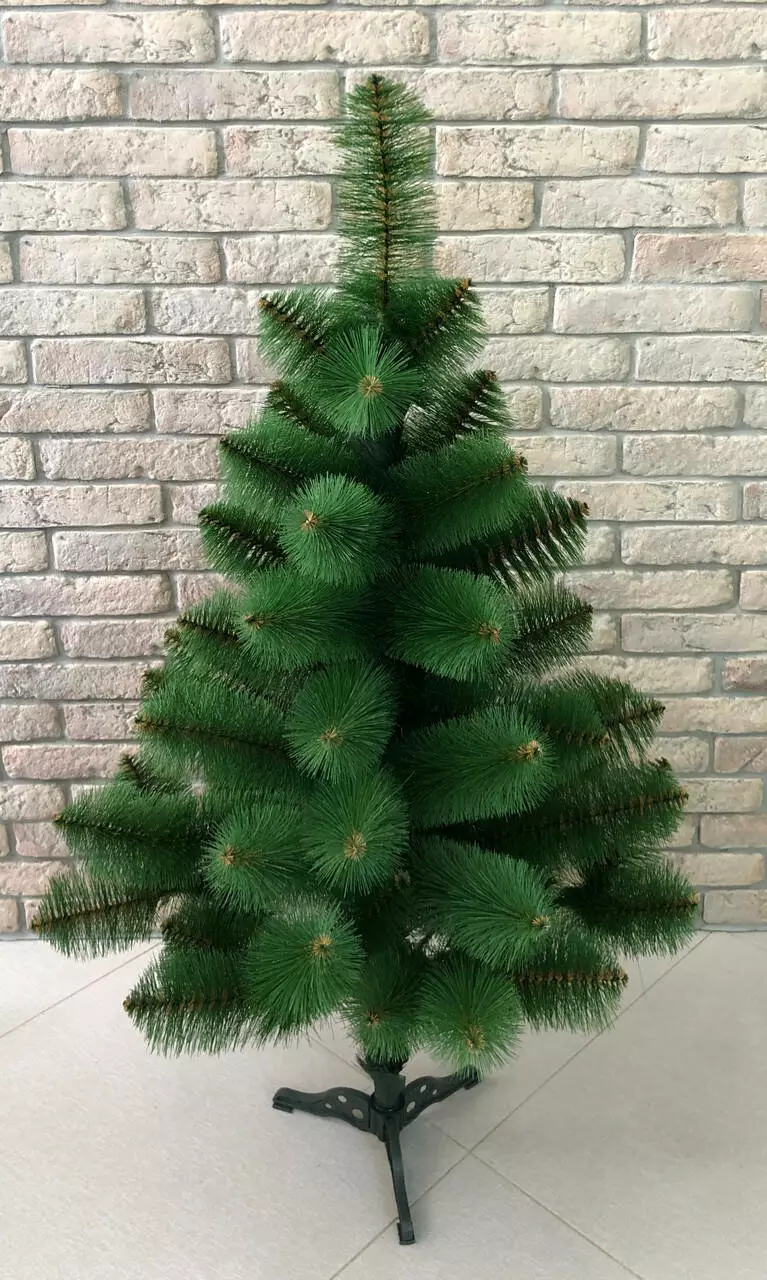 Конструкція: сталевий стовбур, на якому кріпляться гілки з такою ж дроту. Модель з легкістю встановлюється: треба просто розпрямити гілки, вставити стовбур дерева в ніжки підставки і розвісити іграшки. Підставка стійка, сосна не перекидається, навіть коли щедро прикрашена іграшками і мішурою.