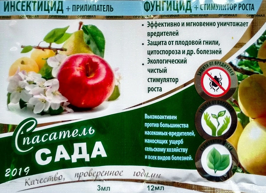Данный препарат используется для защиты садовых культур от большинства насекомых-вредителей и широкого спектра грибковых заболеваний. Благодаря наличию прилипателя средство эффективно действует при неблагоприятных погодных условиях, а также при повышенных температурах, при этом в состав препарата входит микроудобрение которое в свою очередь снижает стресс от воздействия пестицидов и улучшает вкусовые и физические показатели плодов и листьев растений.