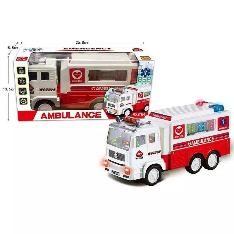 Спецтехніка JY 693 (60/2) “Швидка допомога”, підсвічування, звуки транспорту, сирена, колесо вільного ходу, в коробці