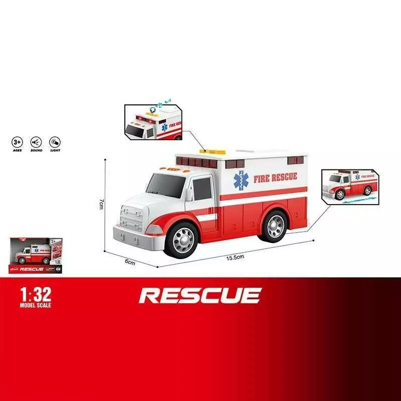 Спецтехніка WY 1109 A (96) "Пожежний автомобіль", звук, підсвічування, масштаб 1:32, інерція, в коробці