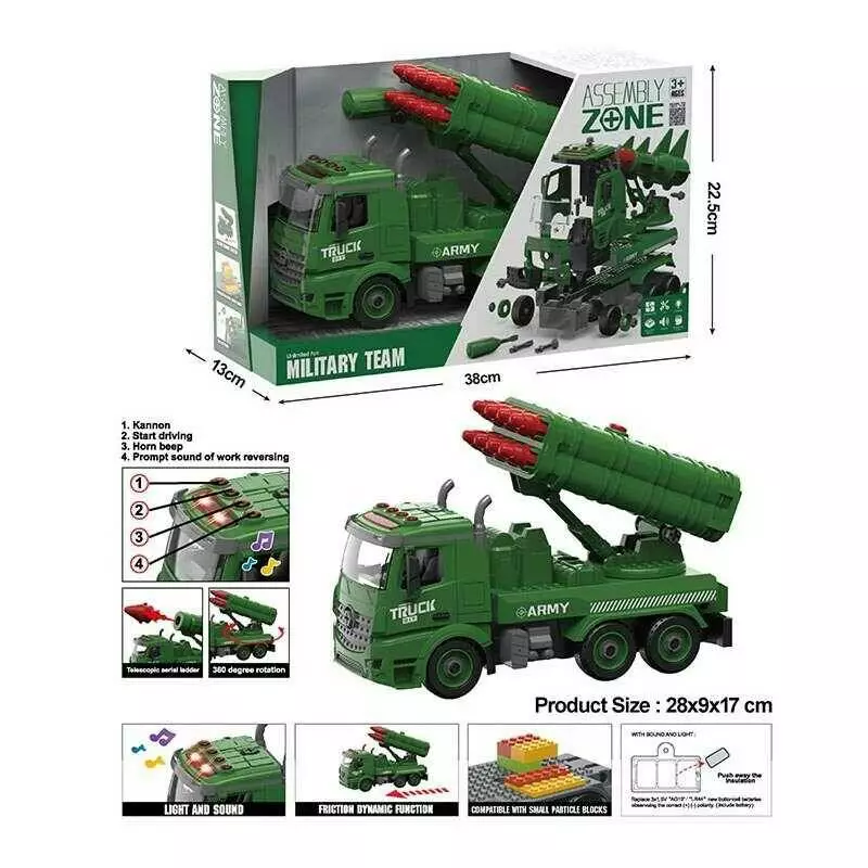 Головна > Каталог > Іграшки > Іграшкові машинки > Спецтехніка YW 9091 D (24/2) військова машина, підсвічування, звук, механічне обертання платформи по колу, інерція, тріскачка, снаряди, в коробці оптом