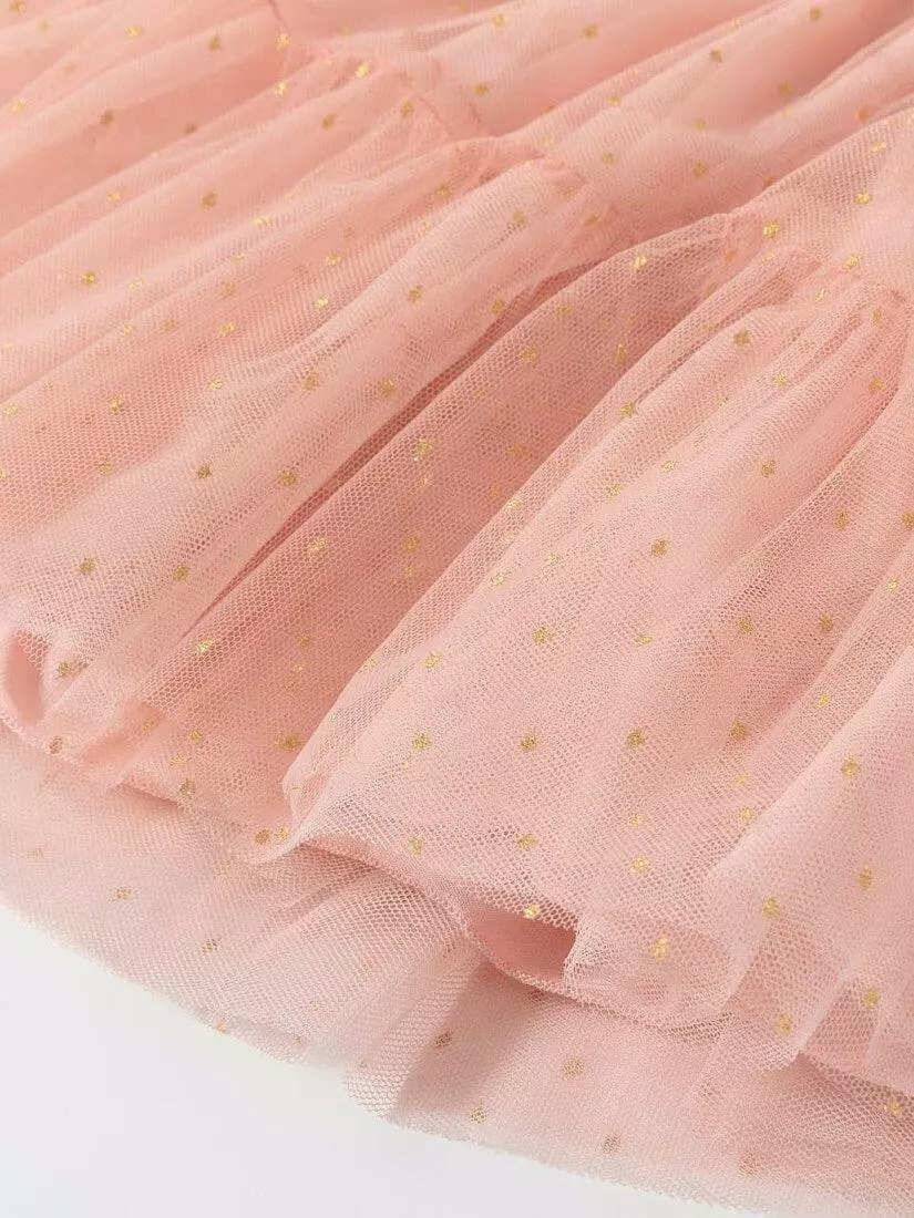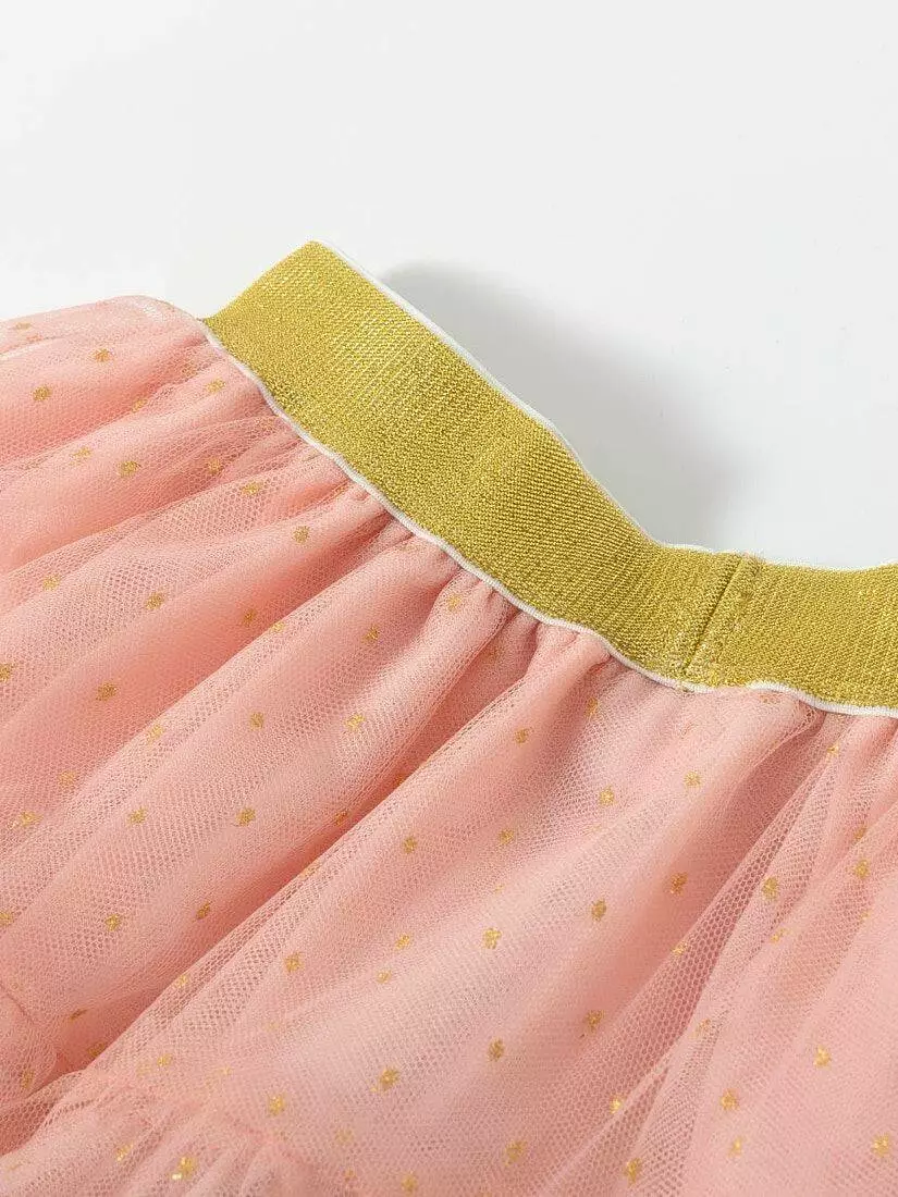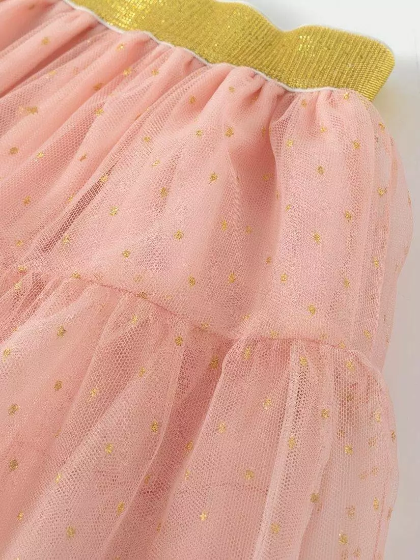 Зустрічайте нову колекцію - колаборація брендів YUMSTER і NEWNESS! Ідеальна спідниця для особливих випадків. Пишна та легка – це втілення стилю, витонченості та неповторності! Деталі моделі: спідниця чорного кольору. Пояс на резинці. Кілька ярусів фатина + непрозорий під’юбник чорного кольору. Декор - напилення золотого та чорного кольору у вигляді дрібного горошку. Розмірний ряд: на зріст від 98 см до 140 см