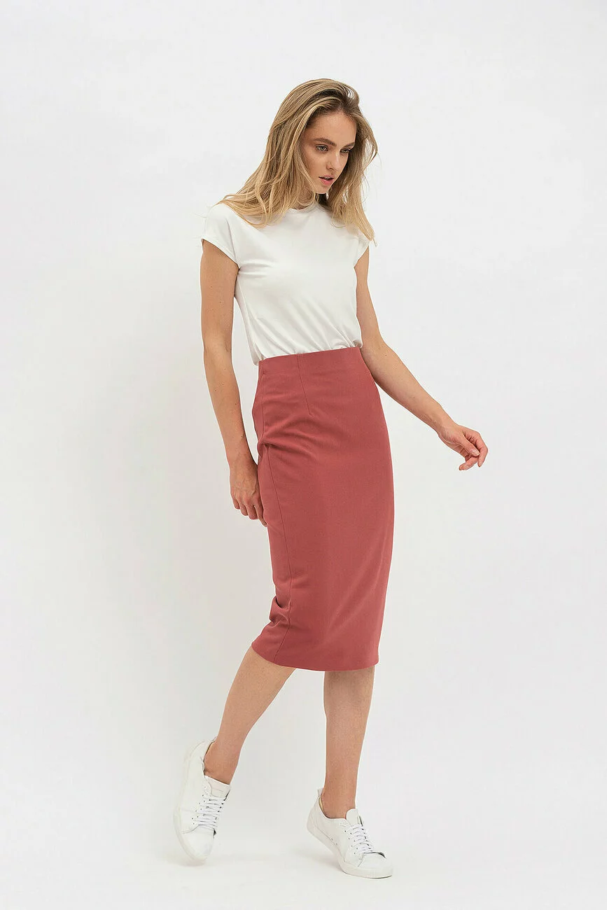 Элегантная женская юбка прилегающего силуэта, слегка заужена к низу.