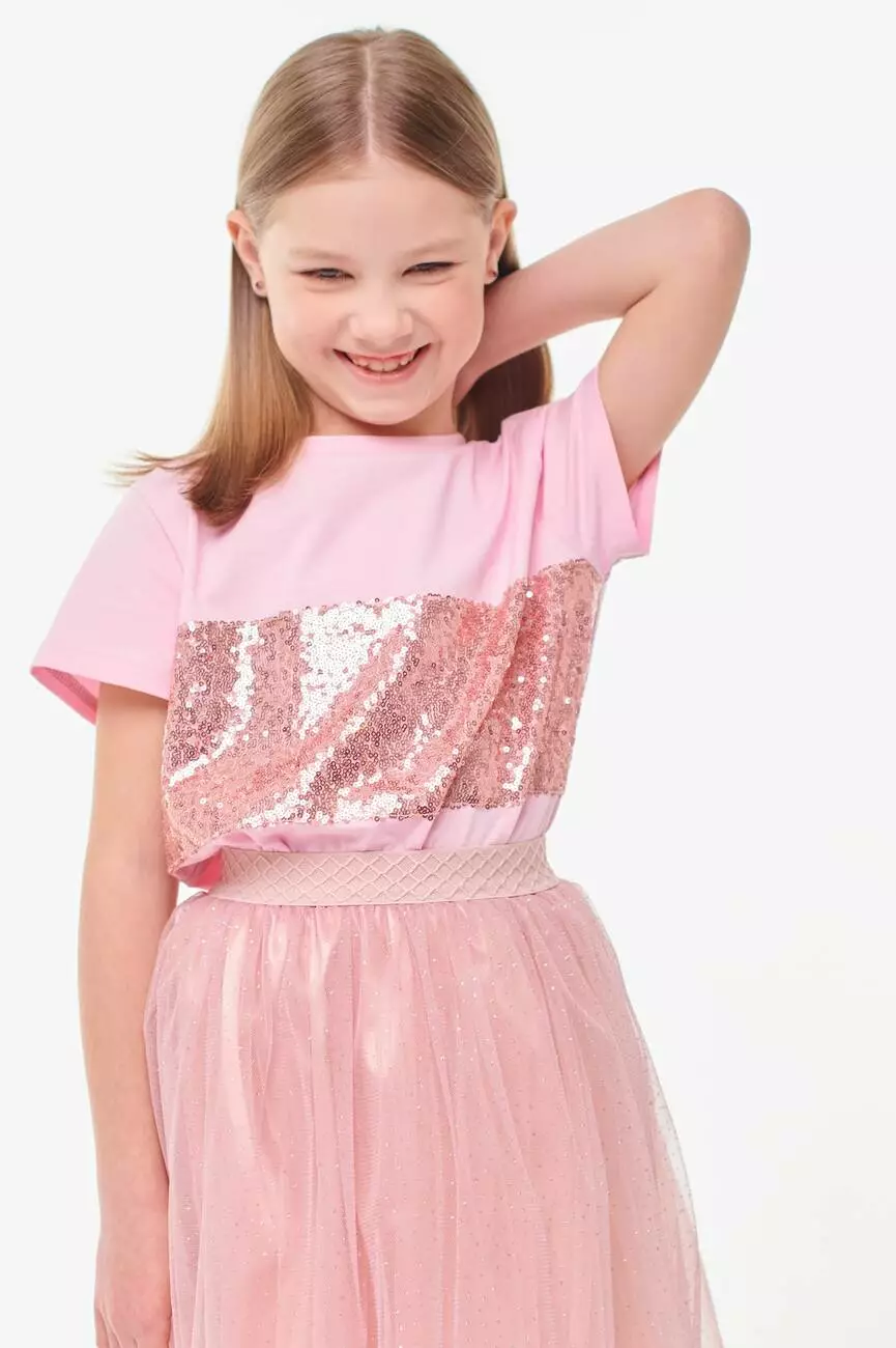 Деталі моделі: Спідниця пудрового (рожевого) кольору. Довжина спідниці - до колін. Підкладка - атлас. Верх спідниці - 2 шари фатину. Верхній шар фатину з срібним напиленням. Пояс виконаний із широкої резинки в тон спідниці.