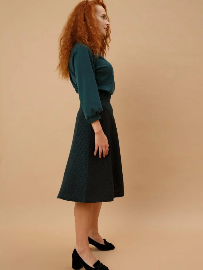Трапецієподібна спідниця з твідової вовняної тканини, спереду
