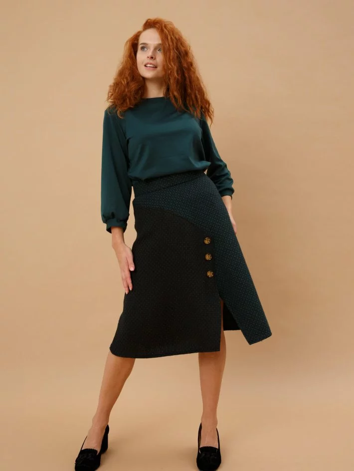 асиметрична деталь прикрашена декоративними ґудзиками. Спідниця