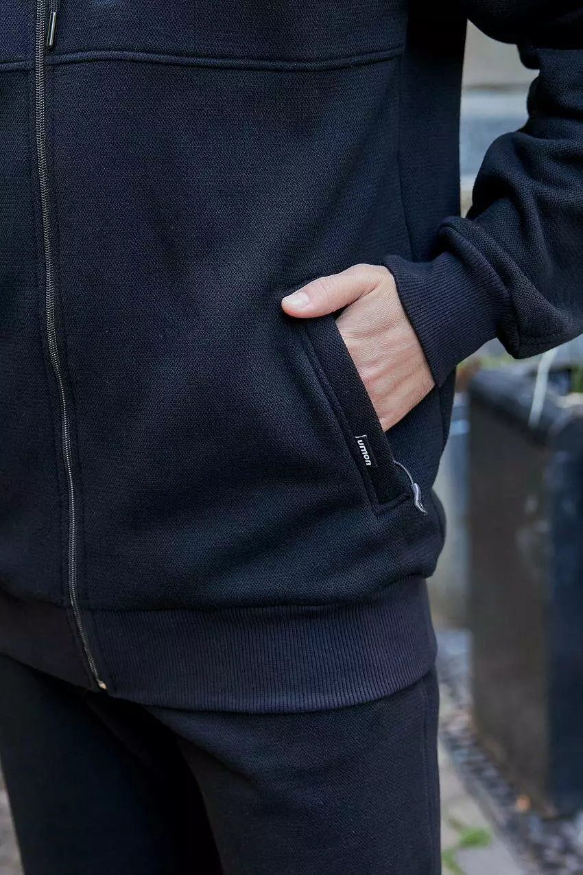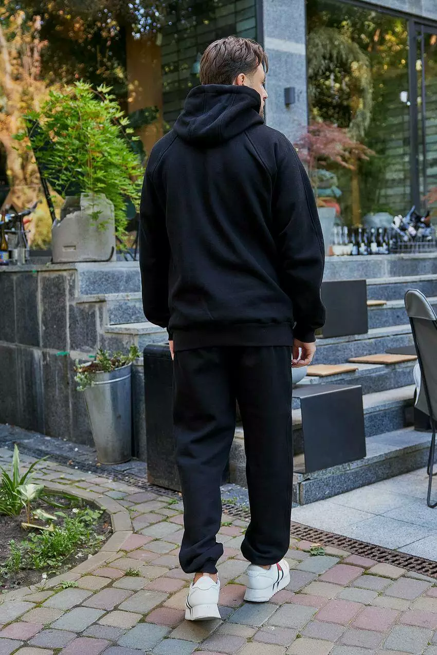 Спортивний чоловічий костюм з лакости: худі на блискавці та