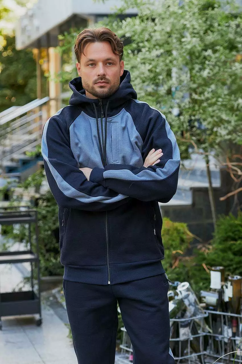 Спортивний чоловічий костюм лакоста темно-синій з сірим (М83.4) XXL