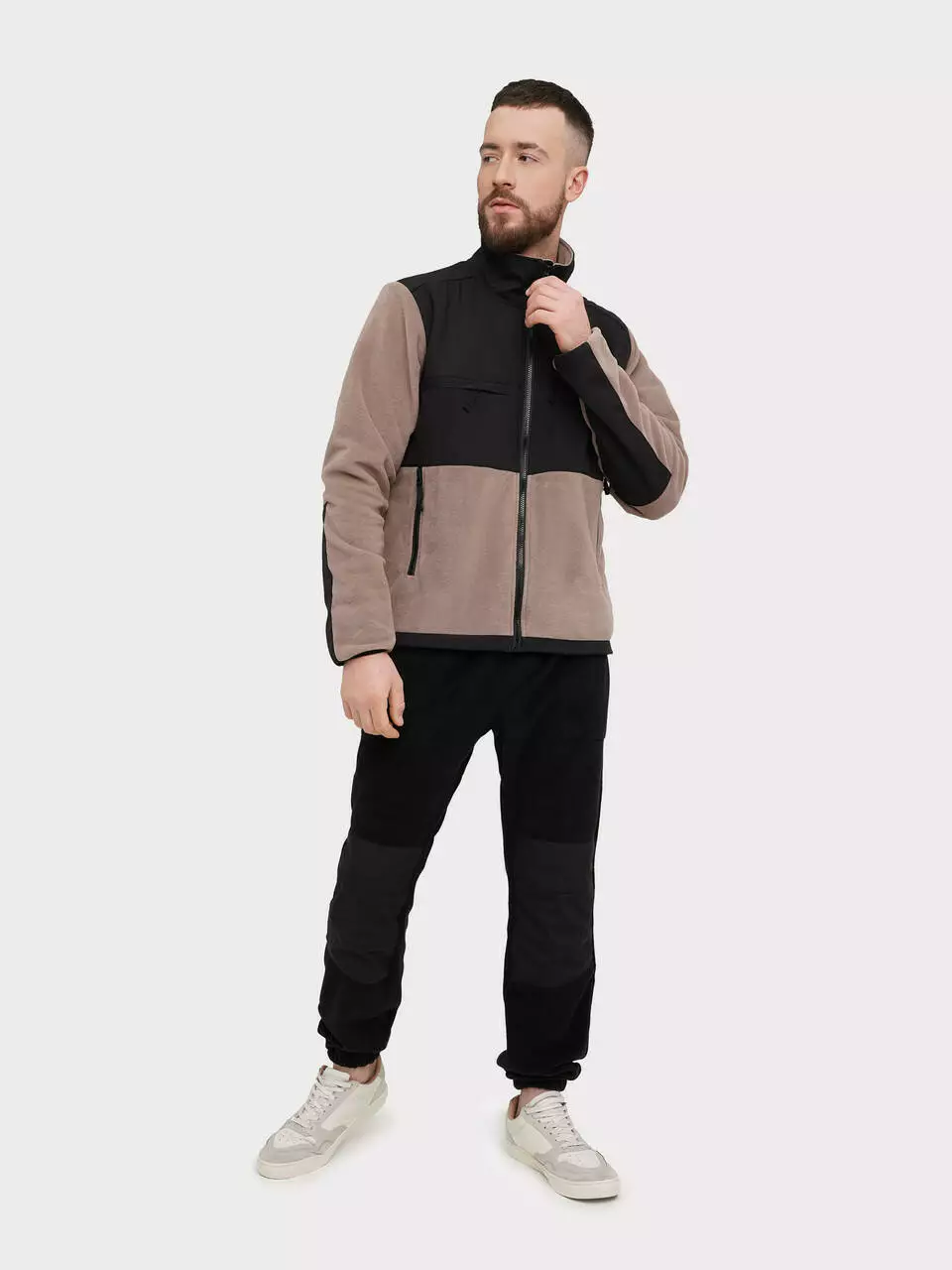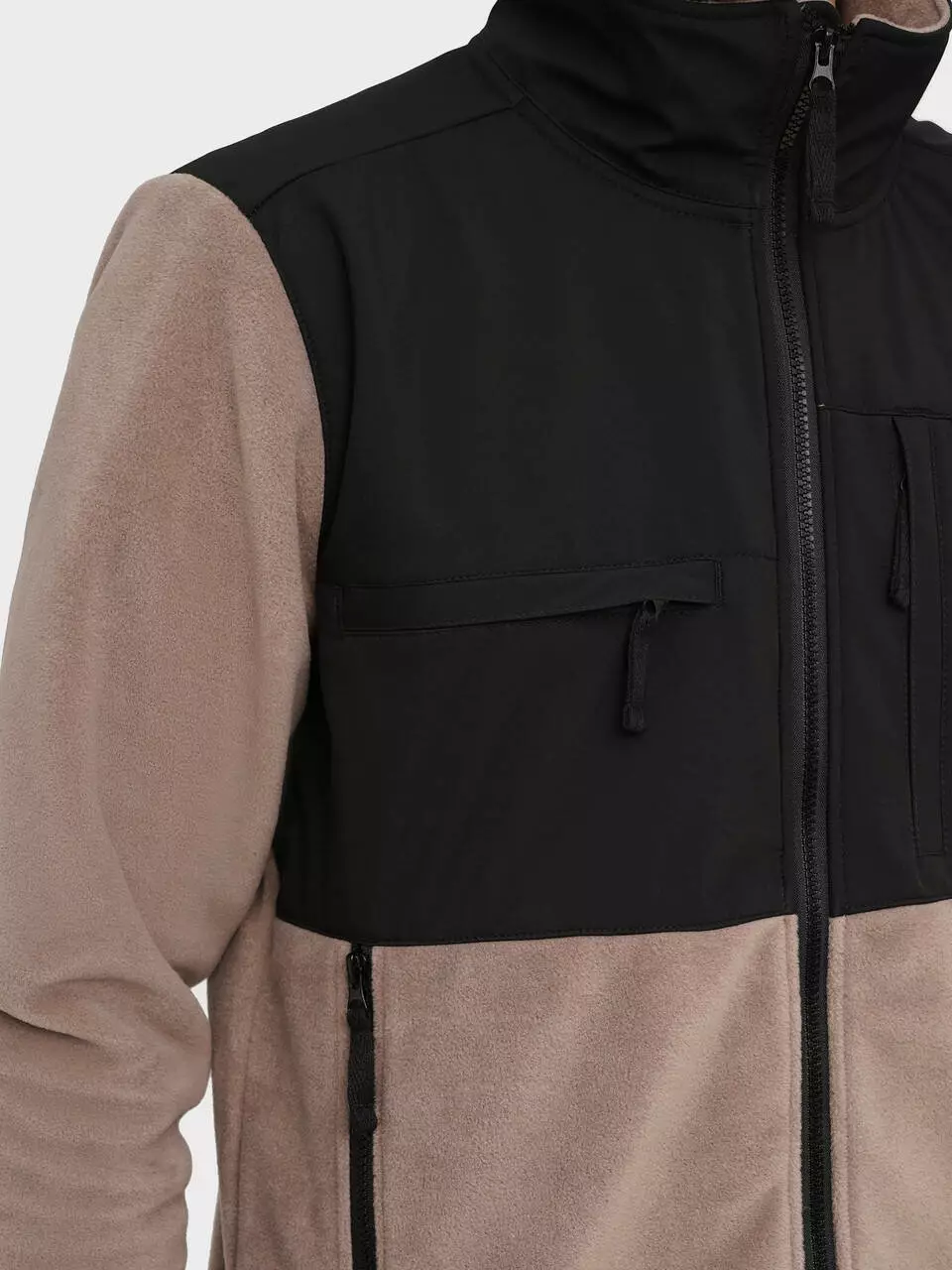 із флісу кольору капучіно із вставками із чорної плащової тканини -
