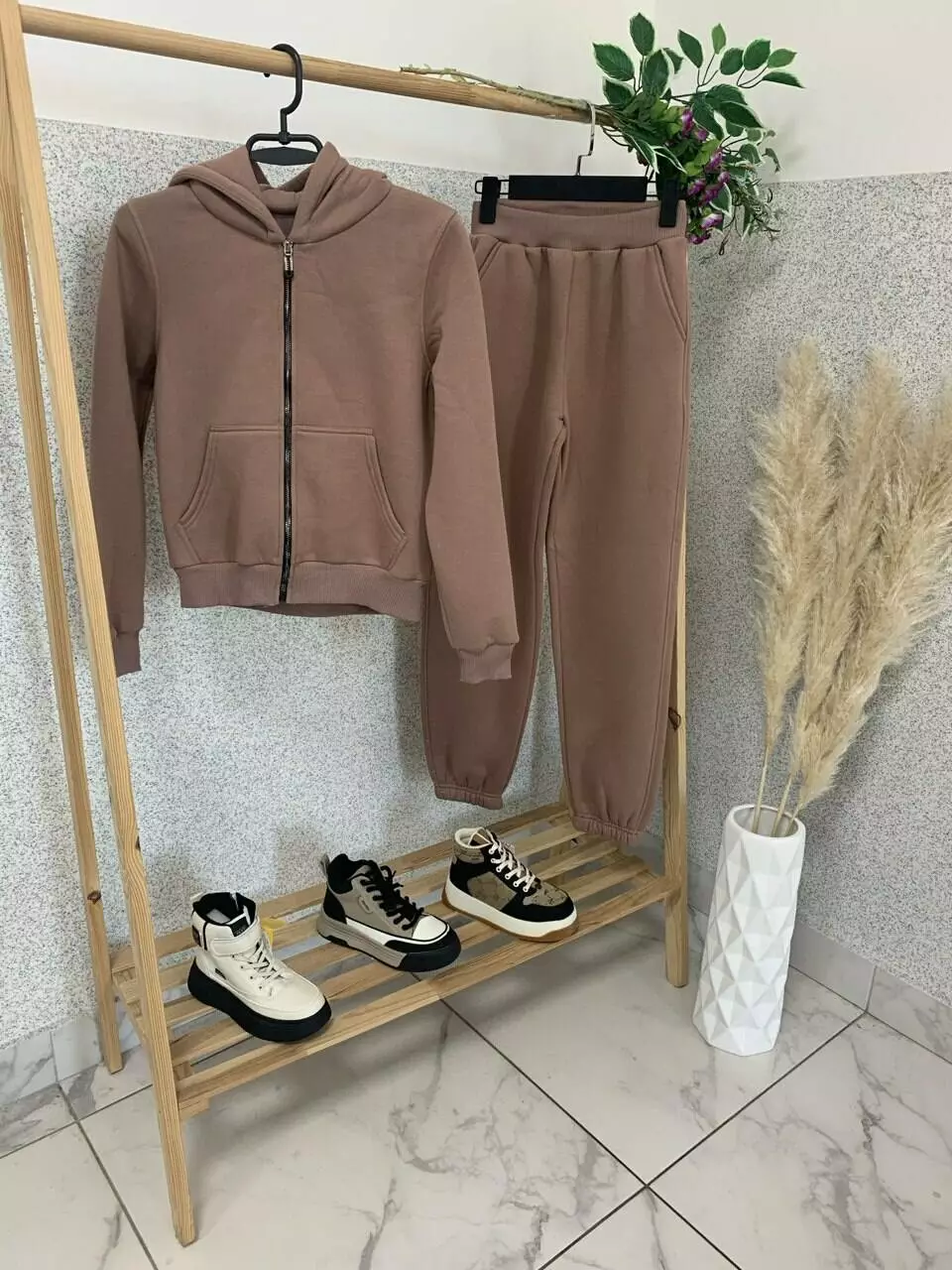 Спортивний костюм утеплений замок ПУДРОВО/КОРИЧНЕВИЙ дів. бежевий фліз ПК-109 Афродита