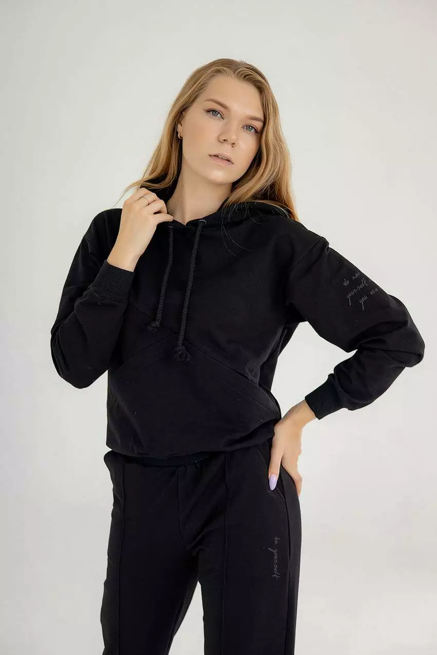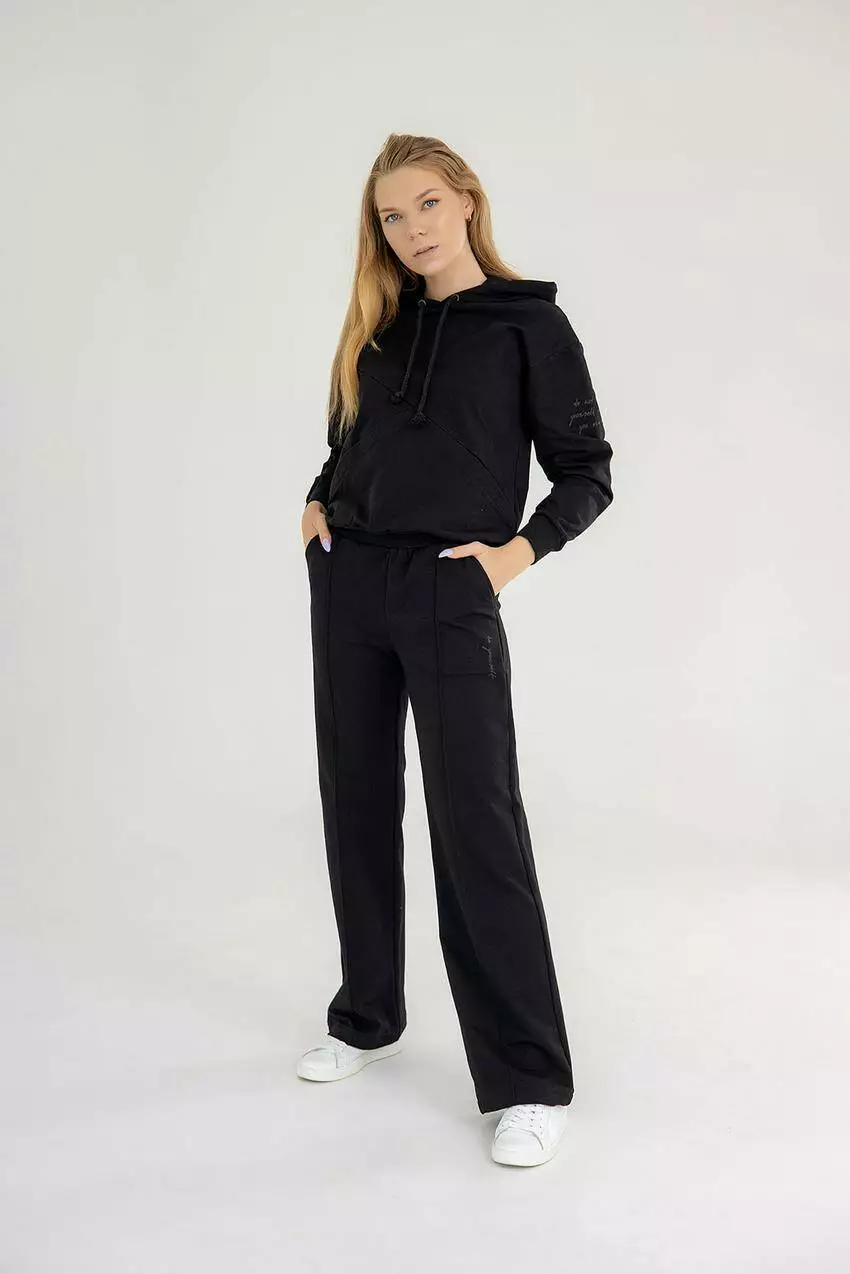 Спортивний костюм жіночий 2-нитка худі та прямими штанами чорний (М50.2) M