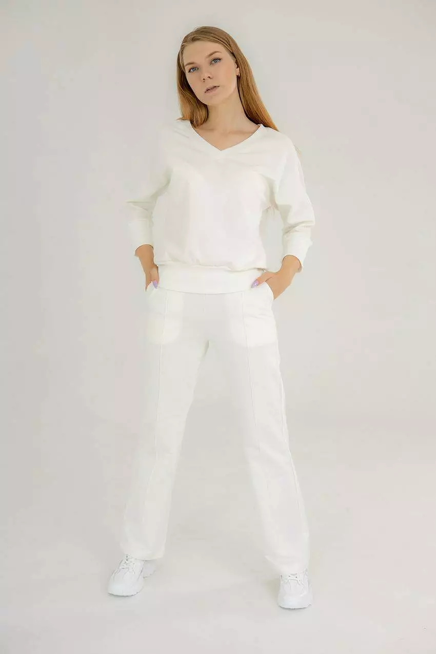 вирізом і прямі штани Стильний жіночий костюм із двонитки — це