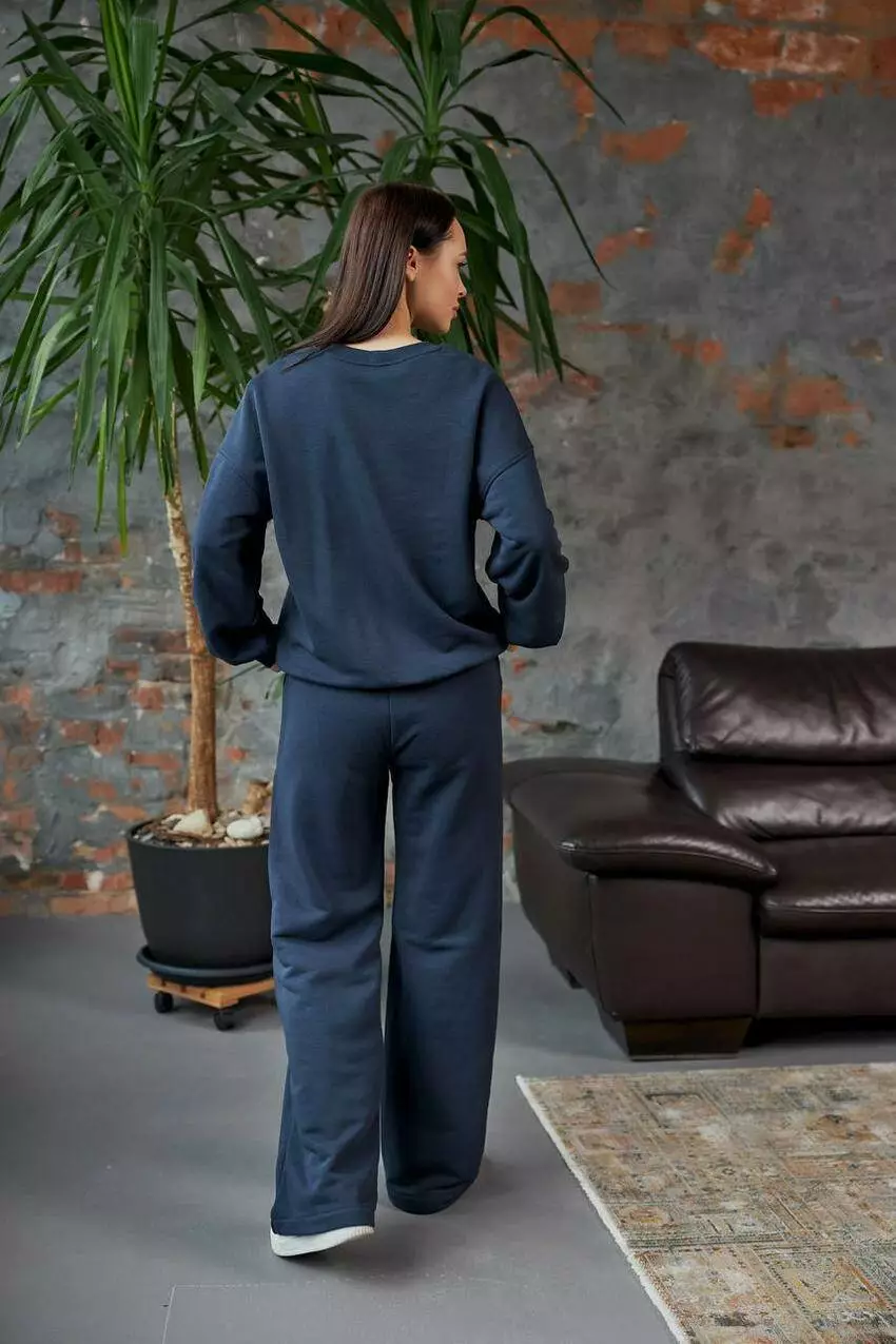 Жіночий спортивний костюм зі світшотом і штанами палаццо —