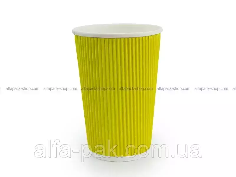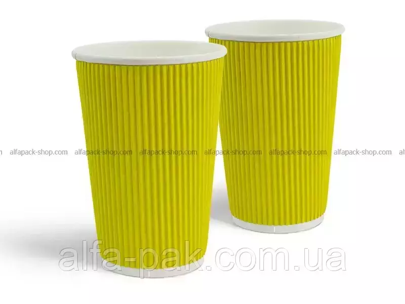 Стакан белый гофрированный желтый 500 мл популярная тара для