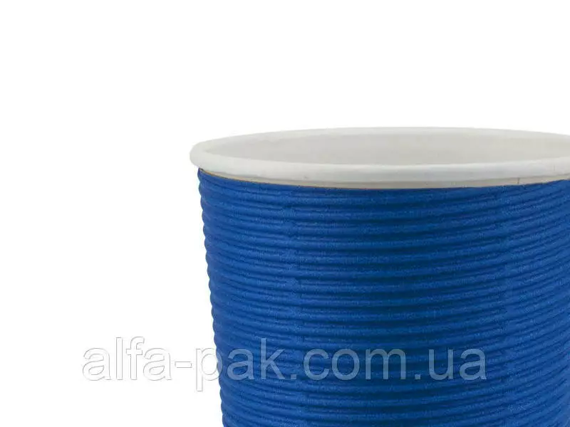Стакан белый гофрированный синий F-волна горизонтальная, 110 мл
