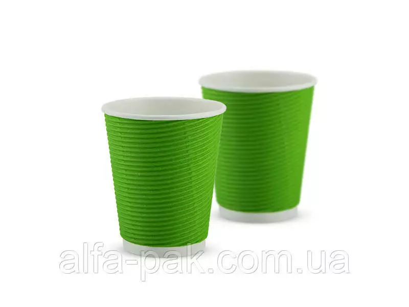 Стакан белый гофрированный зеленый 180 мл F-волна горизонтальная