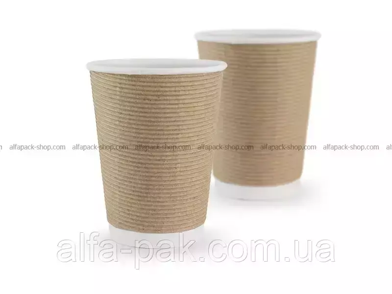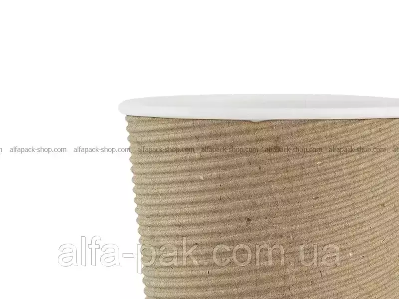 Стакан белый гофрированный бурый 440 мл F-волна горизонтальная