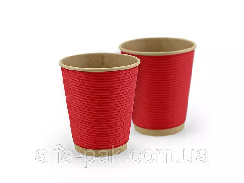 Стакан крафт гофрированный красный F-волна горизонтальная, 270