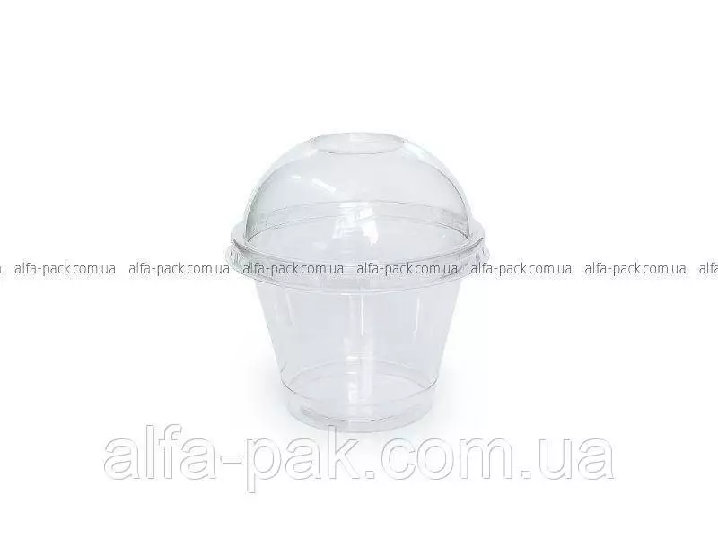 Стакан пластиковый десертный ПЭТ 200 мл + крышка купольная с отверстием