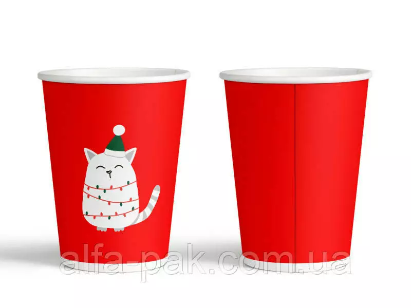 Стакан цветной мелованный "Новогодний котик" 270 мл представитель