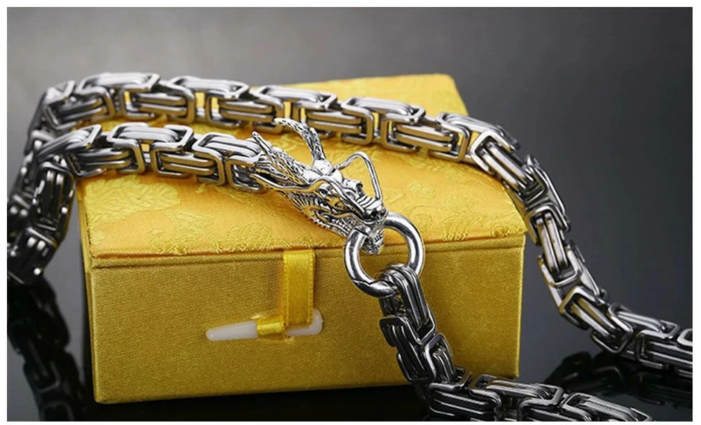 Довгі сталеві ланцюжки RESTEQ із застібкою у формі голови дракона для чоловіків!