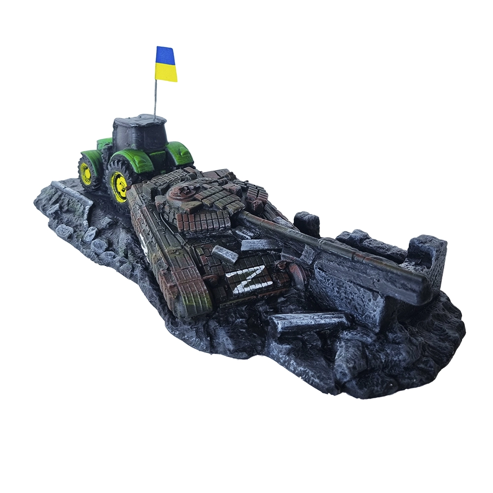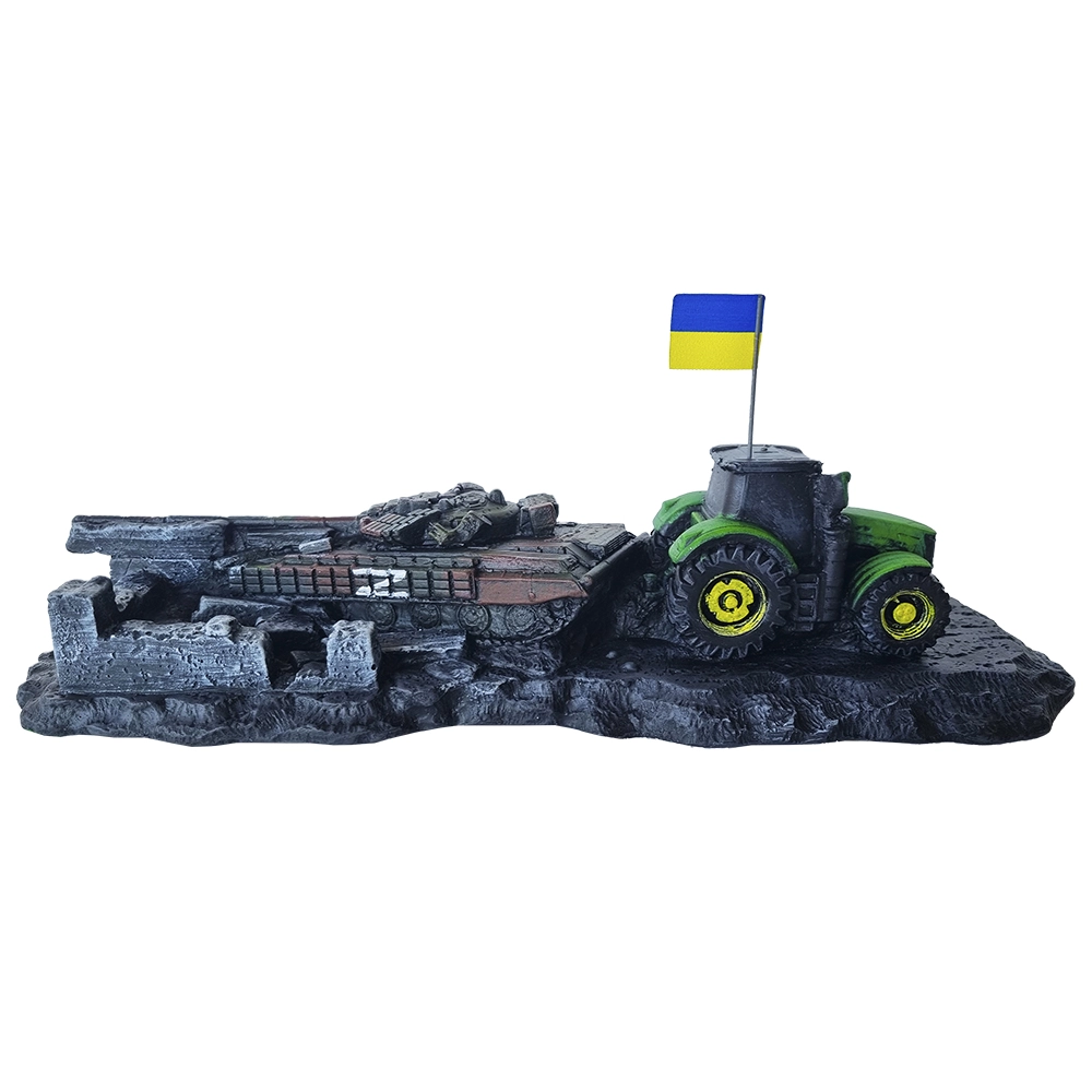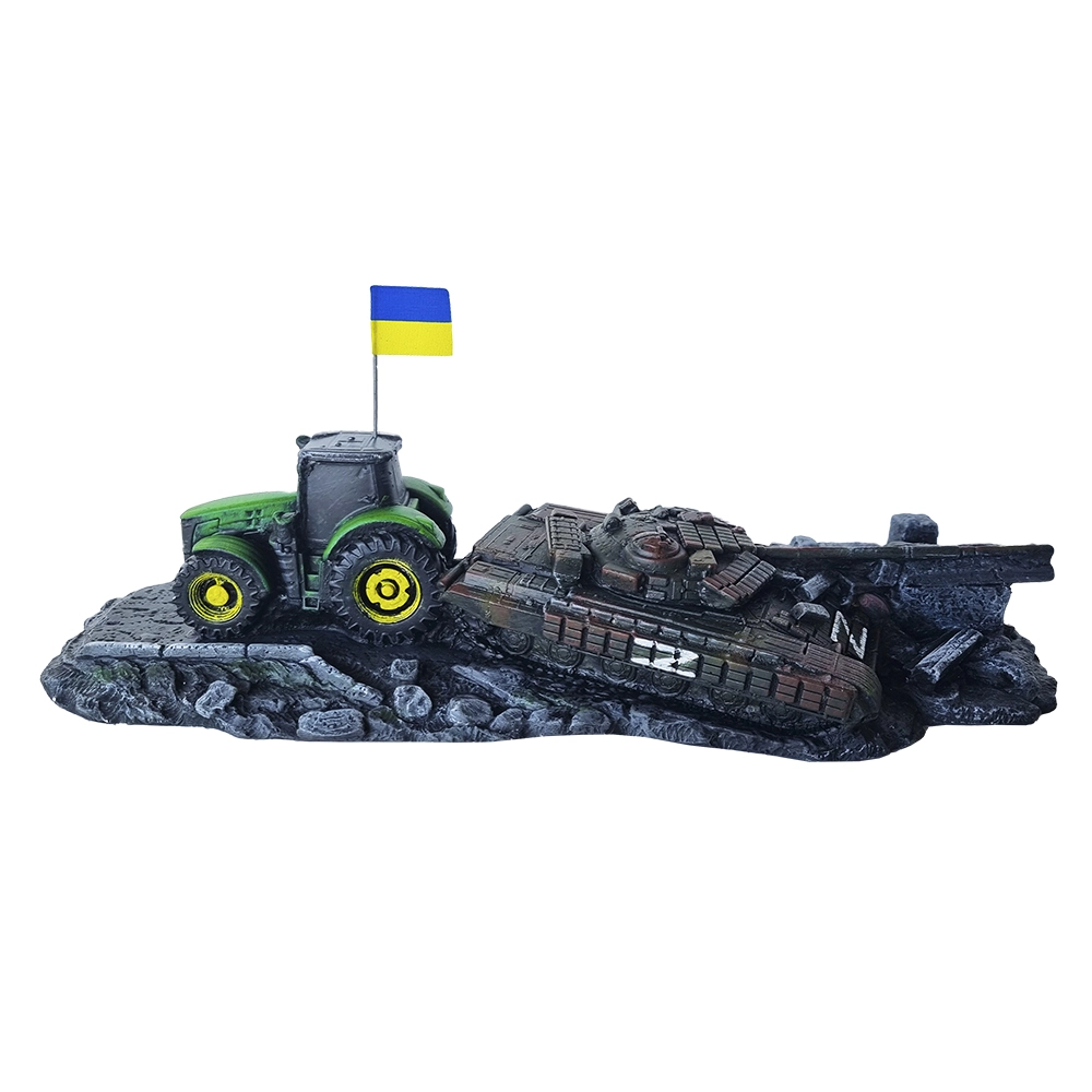 Статуетка "Тракторні Війська" №2 стане гарним подарунком на будь-яке свято, або стане гарним декором Вашого кабінету.Ідея виробу була взята коли з'явилась почтова марка "Доброго вечора, ми з України". На статуетці зображений трактор Українських фермерів який тягне трофейний ворожий танк т-64.