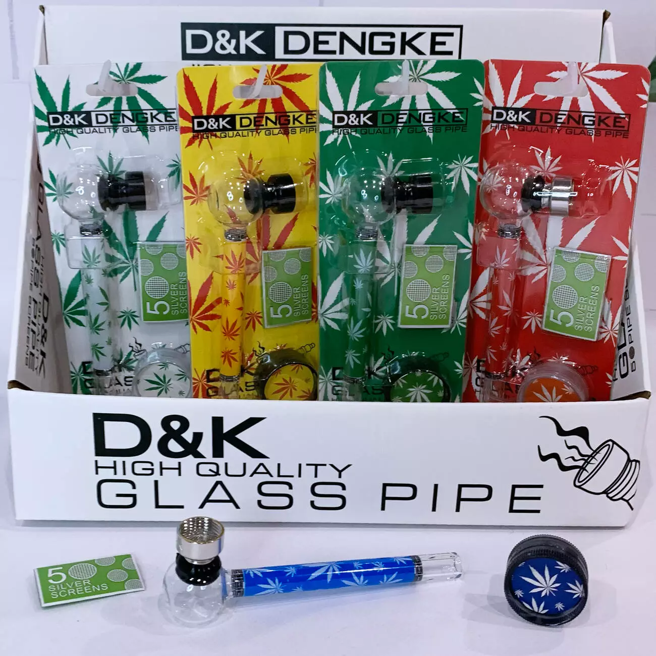 Яркая стеклянная трубка D&K DENGKE — практичный и стильный аксессуар для курения. Изделие выполнено из прозрачного термостойкого стекла и дополнено сменными металлическими сетками. В комплект также входит компактный гриндер для подготовки табака.