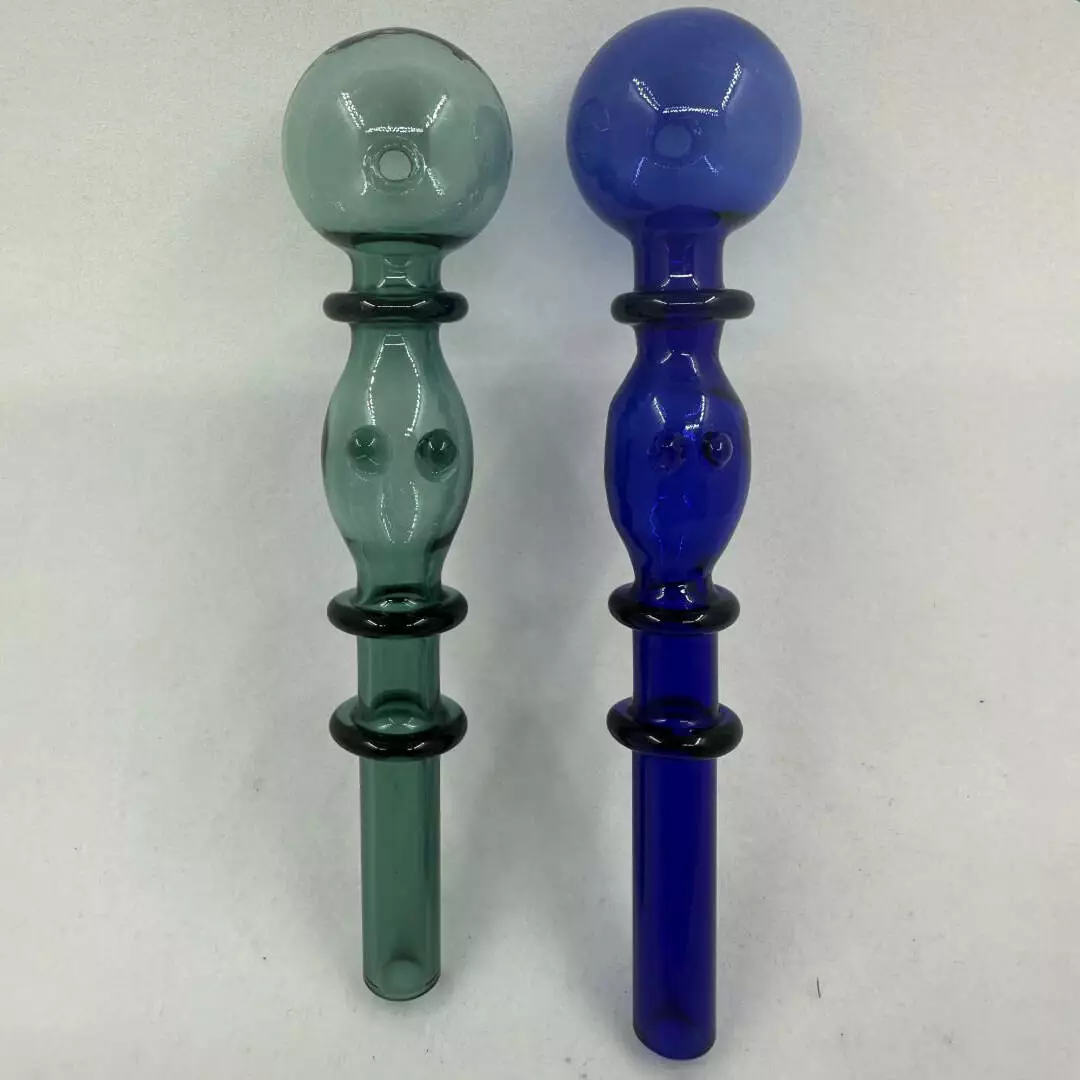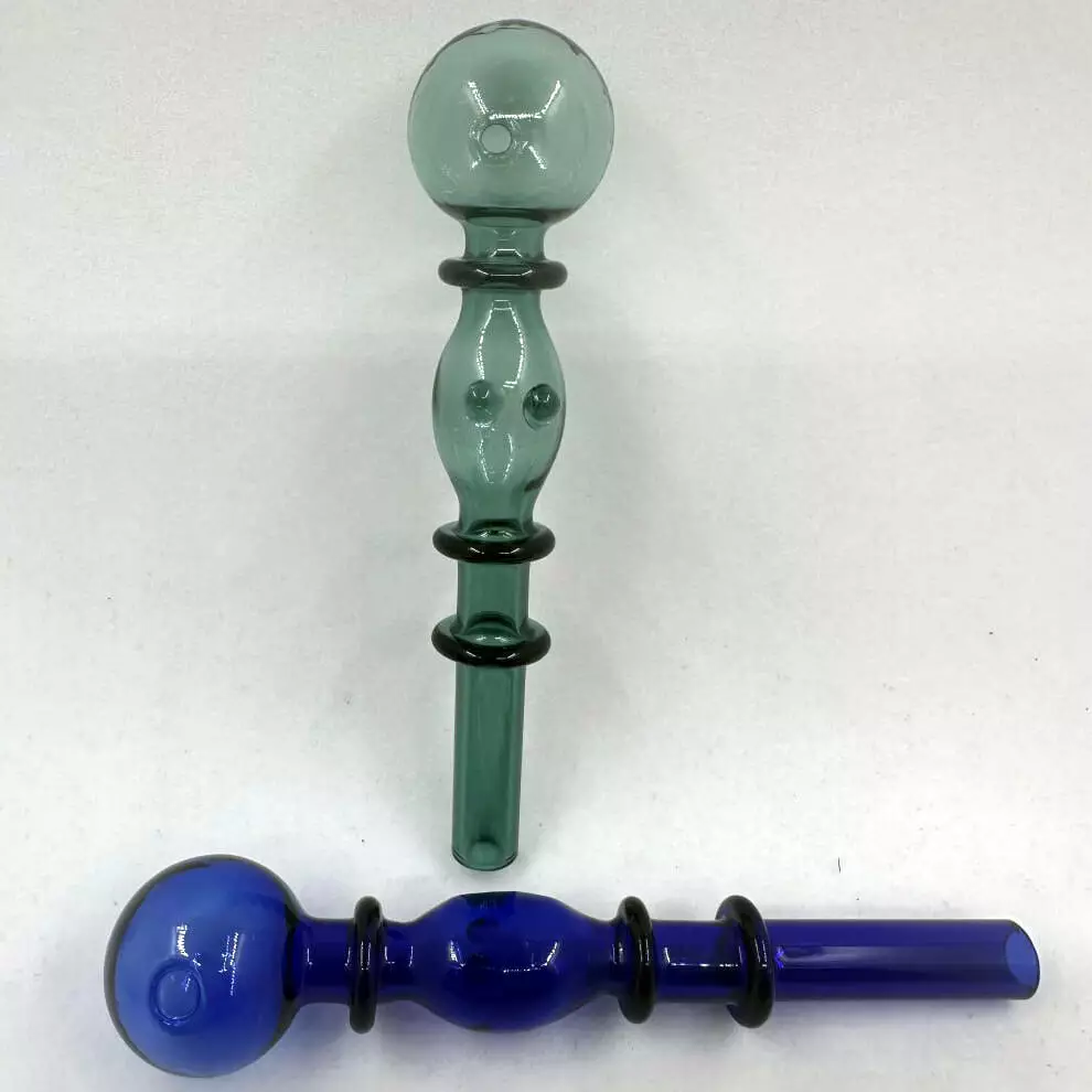 Эти оригинальные стеклянные трубки выполнены в стильном дизайне с утолщённой центральной частью и декоративными кольцами, которые обеспечивают удобный хват и придают изделию необычный вид.