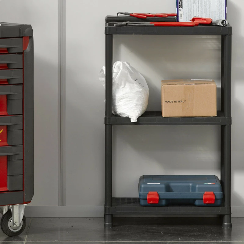 приміщеннях. Пластиковий стелаж чорного кольору не мазкий і