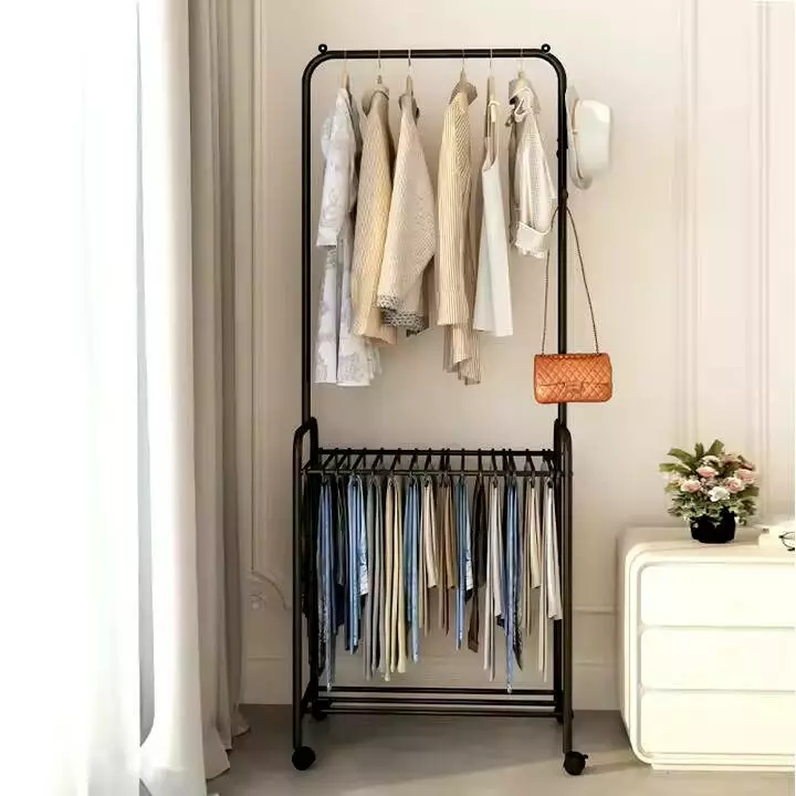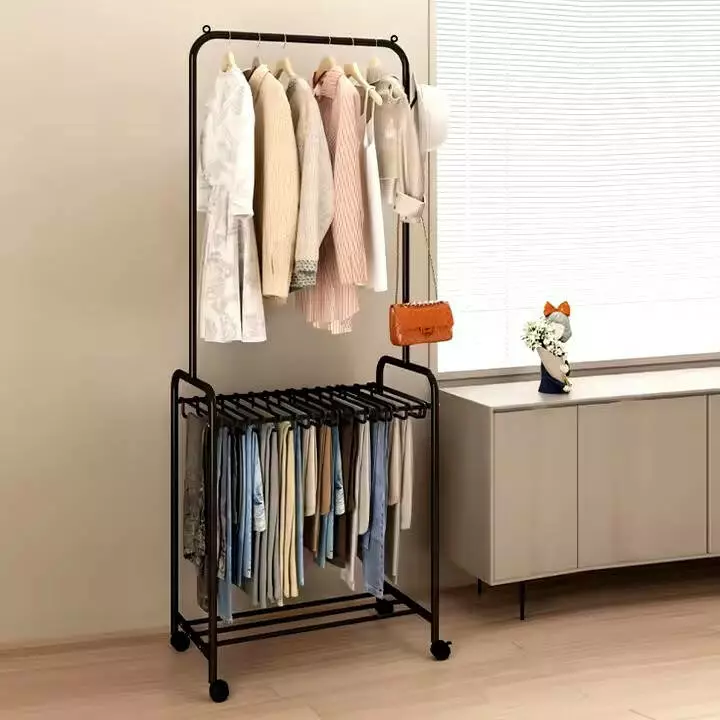 Этот стеллаж-вешалка предназначен для удобного хранения одежды,