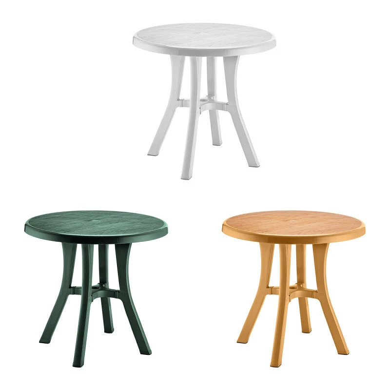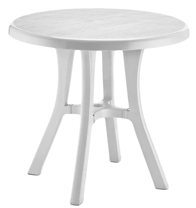 Круглий стіл Royal компактний і функціональний, за ним можуть зручно розташуватися чотири людини. Стіл відмінно підійде для дачної ділянки і буде доречний на відкритій терасі літнього кафе. Він міцний і стійкий, ніжки оснащені поліуретановими заглушками. У конструкції моделі передбачено отвір для парасольки, з заглушкою. Виріб виготовлено з пластика, стійкого до впливу низьких і високих температур, вологи, УФ-випромінювання. Завдяки цьому воно збереже відмінний зовнішній вигляд і бездоганну якість протягом усього терміну служби. Стіл призначений для використання в житлових приміщеннях, в громадських місцях, на вулиці.