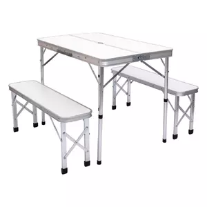 Універсальний кемпінговий набір, що складається зі столу та двох лавок, підходить для виїздів на природу, дачі чи тимчасового використання вдома. У складеному вигляді набір перетворюється на компактну валізу розмірами 90×10×30 см, яку зручно транспортувати та зберігати. Такий формат особливо зручний для подорожей автомобілем або зберігання у квартирі з обмеженим простором.