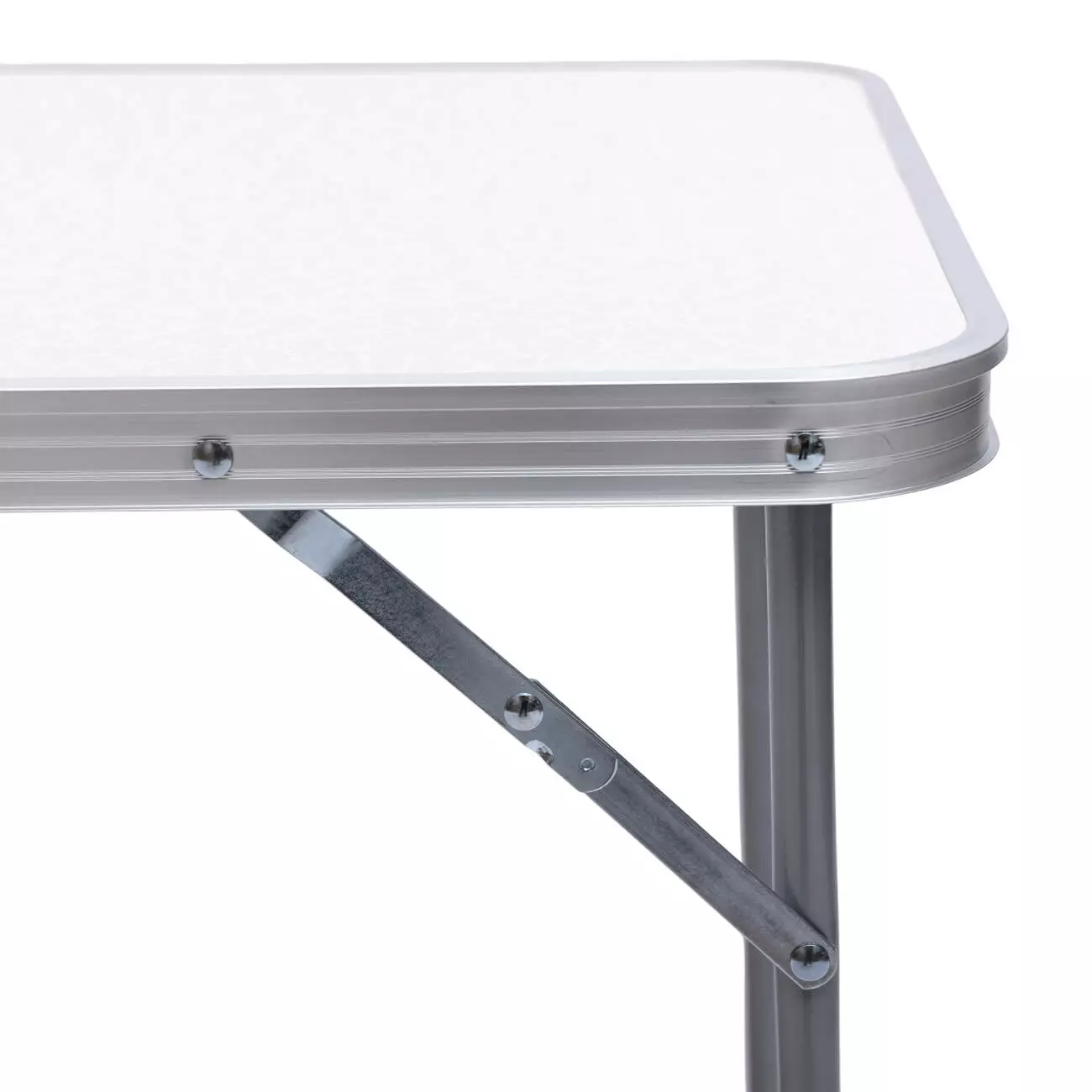 Каркас виготовлено з комбінації високоякісного алюмінієвого сплаву та залізної труби, що забезпечує хорошу стійкість і довговічність при експлуатації. Стільниця зроблена з плити МДФ — вона має рівну поверхню, стійку до навантажень і зручну для розміщення посуду, продуктів або іншого інвентарю. У розкладеному вигляді стіл має габарити 70×50×60 см, чого достатньо для комфортного використання.