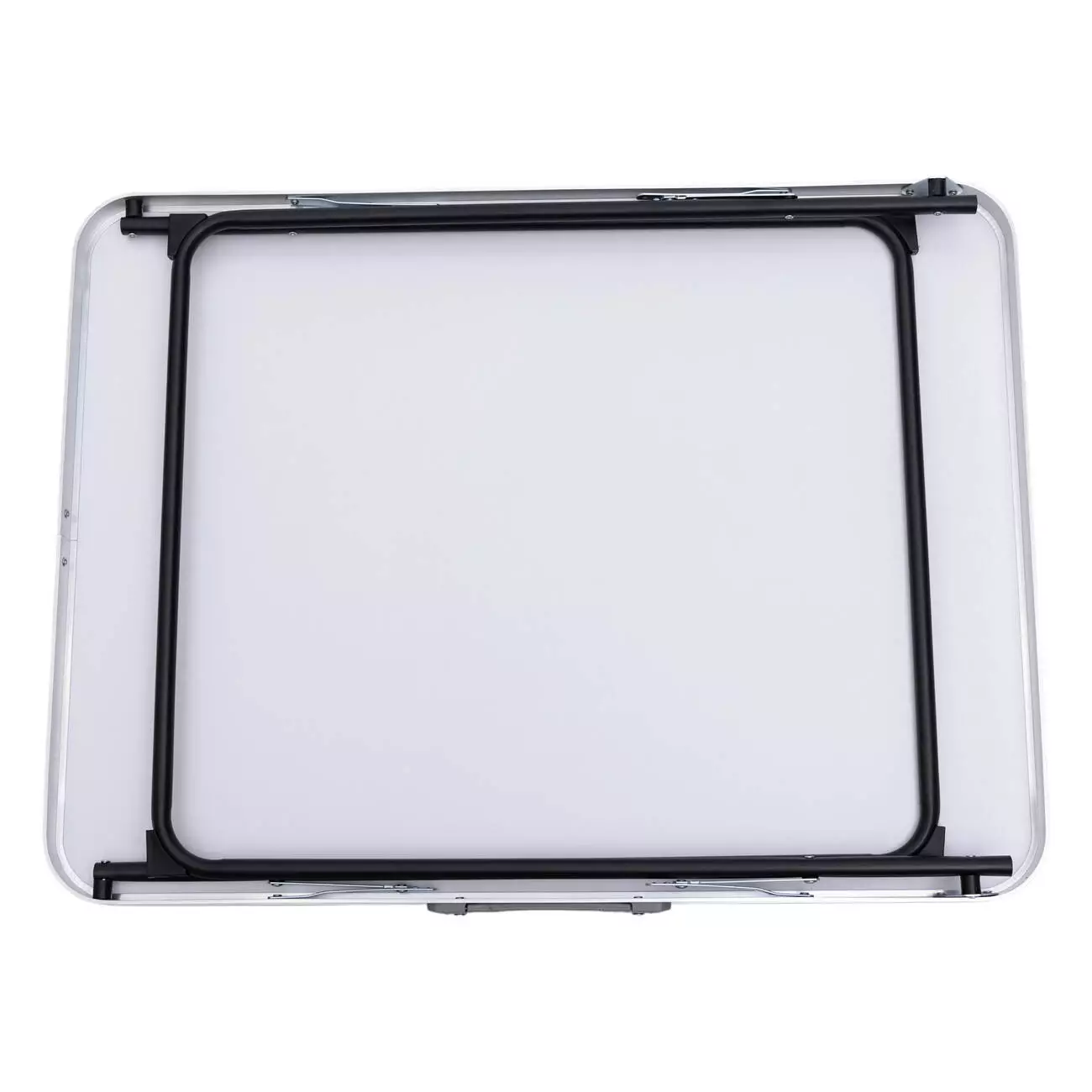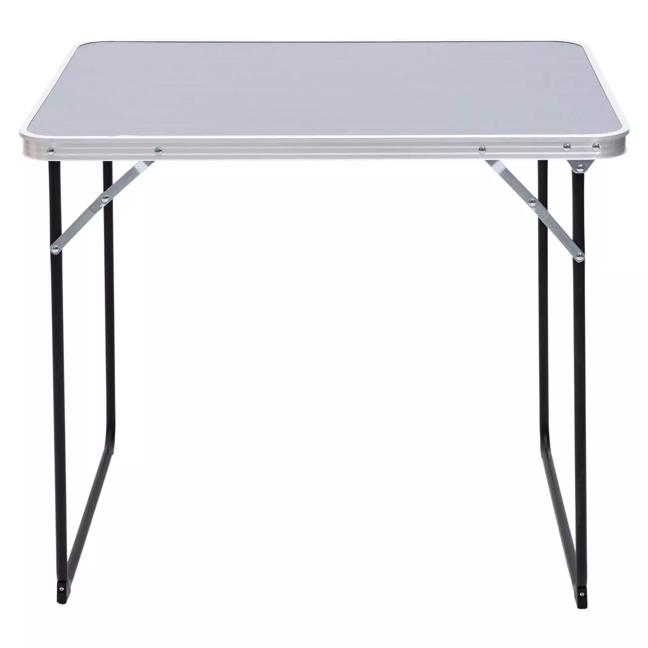 Каркас виготовлено з комбінації високоякісного алюмінієвого сплаву та залізної труби, що забезпечує хорошу стійкість і довговічність при експлуатації. Стільниця зроблена з плити МДФ — вона має рівну поверхню, стійку до навантажень і зручну для розміщення посуду, продуктів або іншого інвентарю. У розкладеному вигляді стіл має габарити 80*60*69,5 см, чого достатньо для комфортного використання.