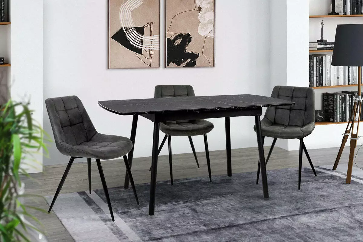 Стіл Соло 110(+35)*70 чорний метал/мрамор чорн