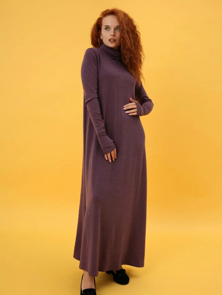 Сукня-гольф з ангори довга в підлогу з рукавами - мітенками. Сукня