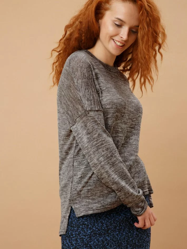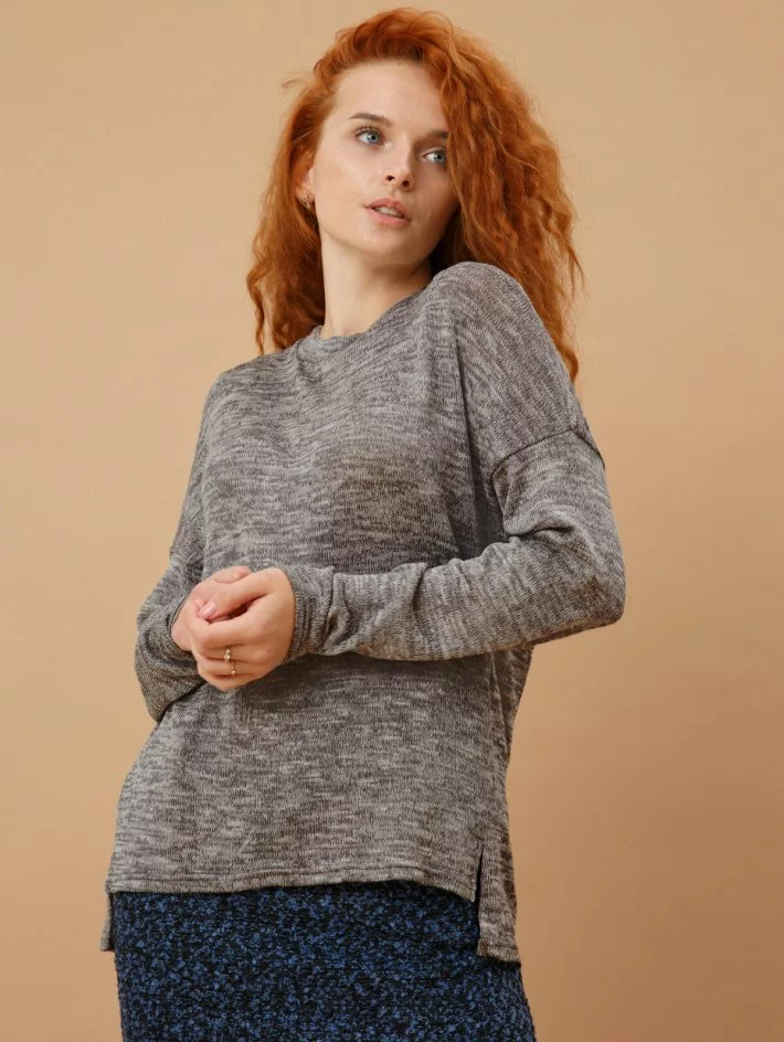 Кофта зі спущеною лінією плеча та оригінальним боковим швом з